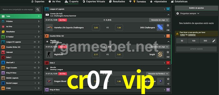 O cr07 vip oferece uma grande seleção de opções de apostas em e-sports com probabilidades competitivas